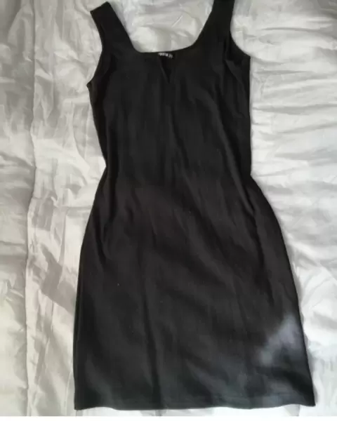 Vestido negro de canelé. Nuevo vestido negro tipo camiseta tela de licra y canelé ajustable al cuerpo, horma la figura, una prenda super básica