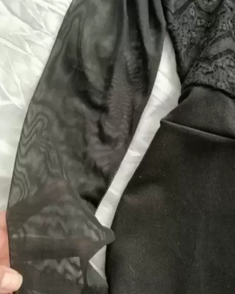 Vestido de encaje con forro falda tela gruesa no transparenta, manga de gasa transparente, ajusta al cuerpo recomiendo para talla m y l, con etiqueta, nunca se ha usado esta completamente nuevo, el precio exacto se muestra en la aplicación, se manda con empaque marca shein