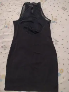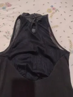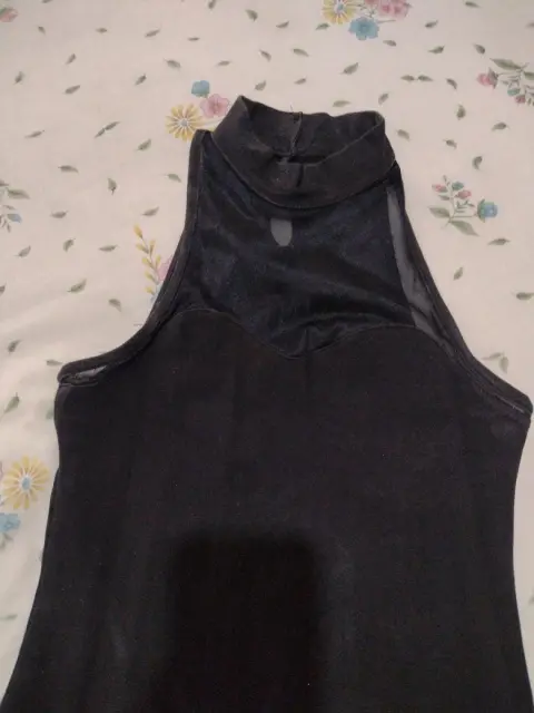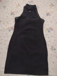 Vestido negro de licra. Vestido corto para dama. De licra. Sin mangas. Color negro. Con detalle de transparencias en frente y espalda. Talla ch.