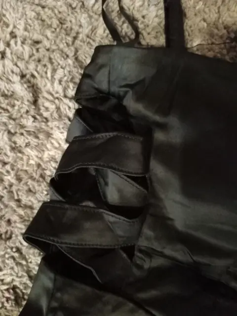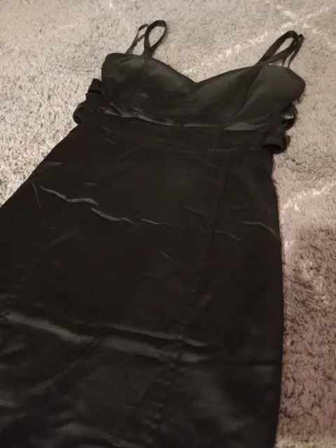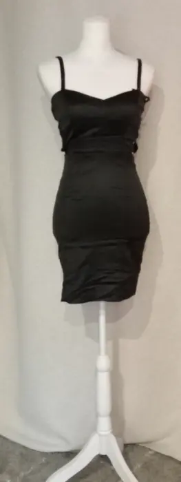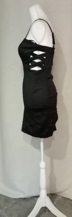 Vestido negro de tirantes. Hermoso vestido pegadito negro de tirantes ajustables. Tiene cierre en espalda y abertura a los costados. Medidas ax a ax 40 cm, cintura 31 cm, largo 82 cm.