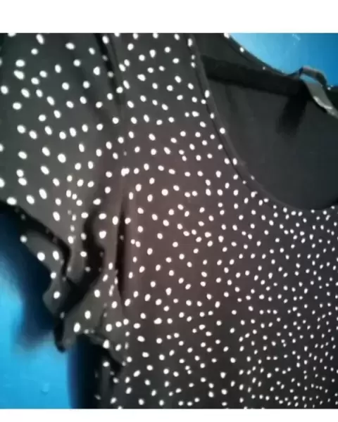 Vestido negro, entallado, de lunares blancos. Vestido casual, ideal para usar con tenis, se amolda al cuerpo, tela muy ligera, manga corta.