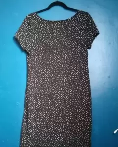 Vestido negro, entallado, de lunares blancos