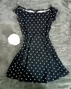 Lindo vestido corto, marca Forever 21, talla M, color negro con lunares blancos, esxcelente estado, tela fresca y a la moda.Foto de modelo solo de muestra.