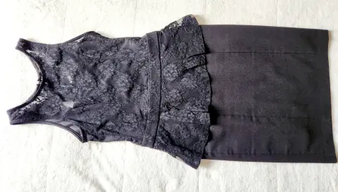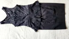 Vestido casual-formal, negro con encaje, estrech un poco, sin mangas, talla ch.