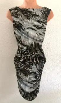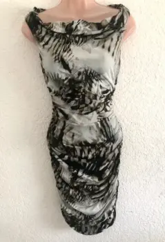 Vestido negro, gris Ivonne talla S. Vestido negro, gris Ivonne café talla S, es plisado a los costados, es sin mangas, cuello de ojal, es stretch, es marca Ivonne esta muy lindo y es muy cómodo para la temporada.