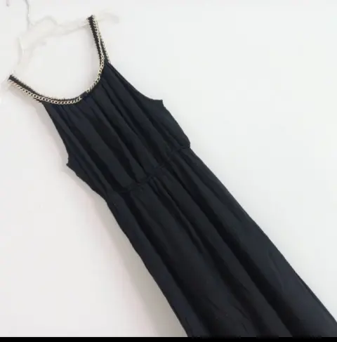 Vestido negro largo. Hermoso, la tela es suave y muy cómoda, no estira mucho pero es justo talla m.