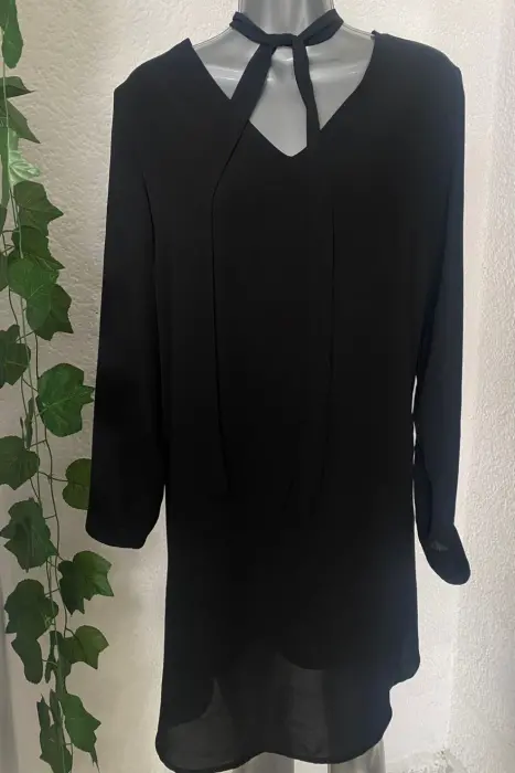 Vestido negro manga larga. bonito vestido de manga larga, con forro. La tela es ligera y fresca. No tiene detalles de desgaste.