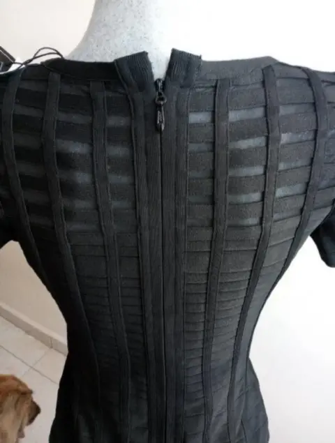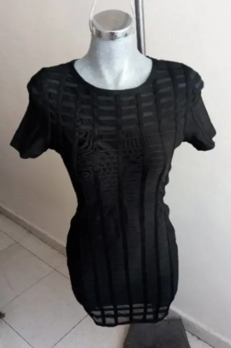 Vestido negro MUSSI. Vestido MUSSI Talla L, color negro, son de los que tienen la estructura como con resorte, nuevo, lo compré y lo guardé, tiene cierre y broche de gancho en la espalda.