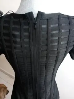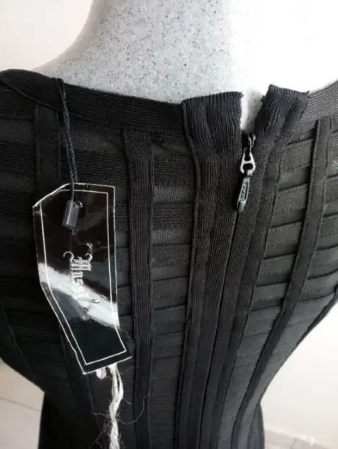 Vestido MUSSI Talla L, color negro, son de los que tienen la estructura como con resorte, nuevo, lo compré y lo guardé, tiene cierre y broche de gancho en la espalda.