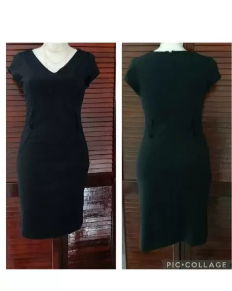 Vestido negro pegadito. Con cierre en espalda. Luce muy bello. La tela tiene strech. Es talla S aunque tambien puede quedar a M. No incluye cinturón. Te hace muy bonita figura por el corte que tiene.De axila a axila: 42 cmHombros: 36 cmLargo: 86 cm