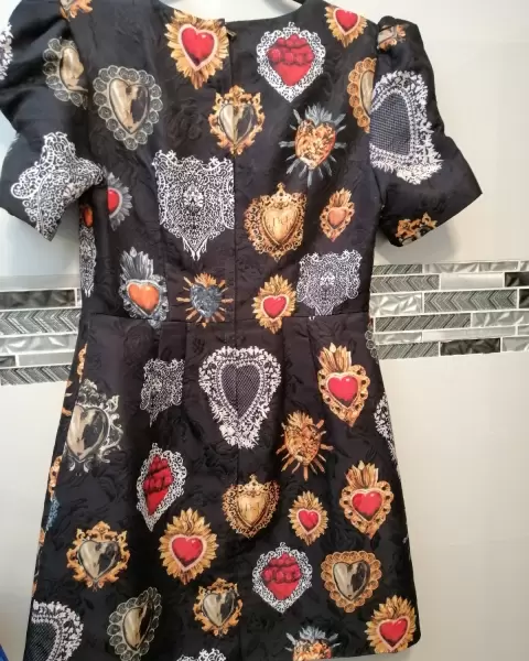 Hermoso vestido color negro con print de corazones inspo, tela con textura de super calidad viene marcado como talla L pero viene reducido a M NUEVOMedidas de axila a axila 45 cmCintura 39 cmLargo 87 cm