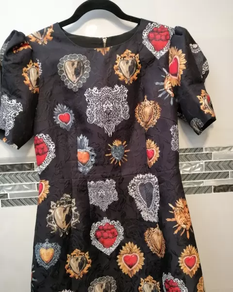 Vestido negro print corazones