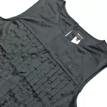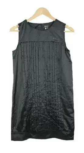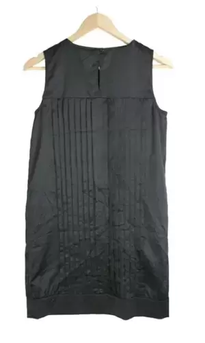 Vestido negro con plisado al frente, sin mangas se abrocha por la parte de atrás. Súper lindo y fresco. Talla XS.