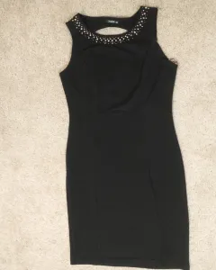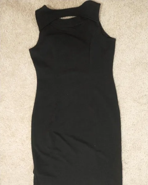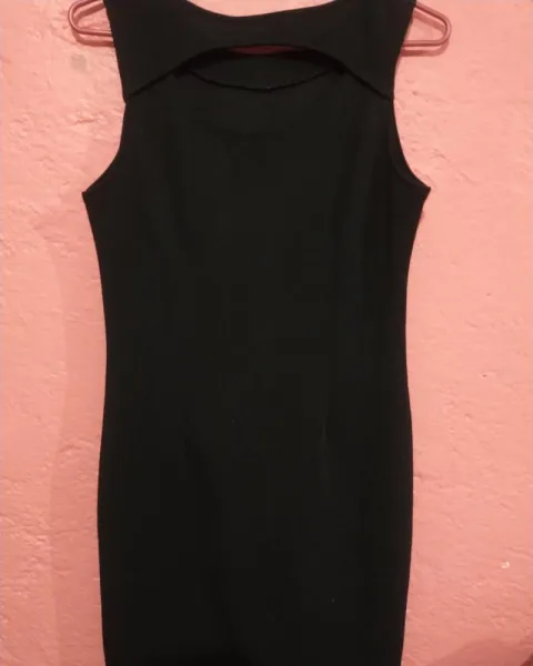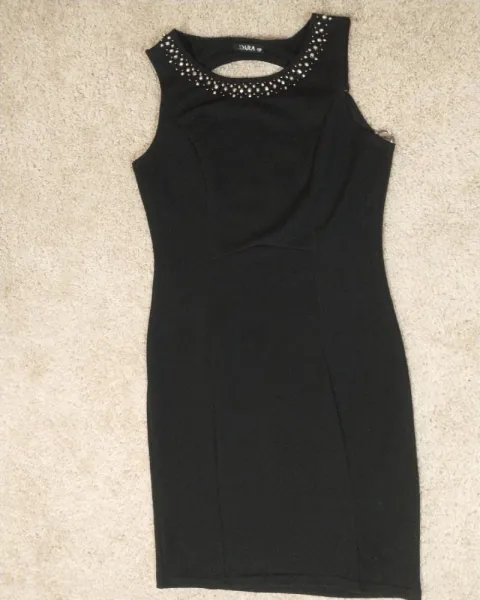 Vestido negro sinn mangas. Vestido marca Zoara, en perfecto estado y sin ningun detalle, con decoración de pedrería en la parte del cuello, talla chica. La tela es tipo strech.