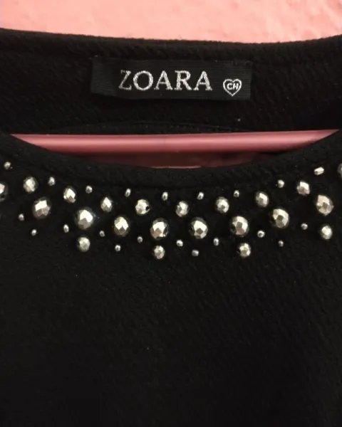Vestido marca Zoara, en perfecto estado y sin ningun detalle, con decoración de pedrería en la parte del cuello, talla chica. La tela es tipo strech.