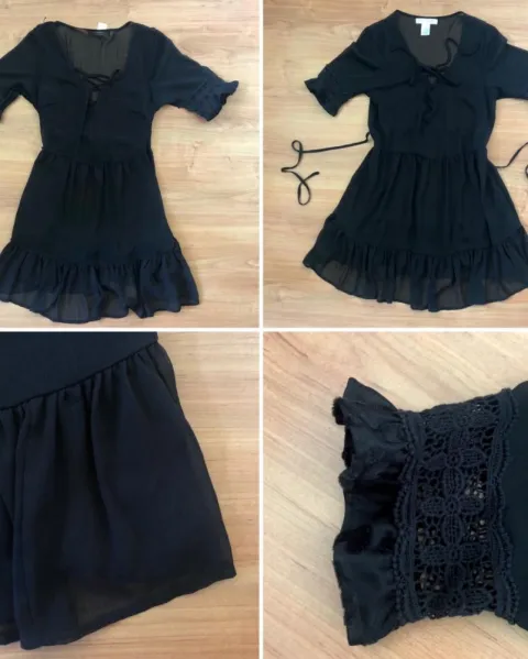 Adquirido en boutique The Latest scoop en Canadá. Vestido traslúcido color negro. Manga abullonada con estilo perforado en las orillas y finaliza en volante al borde. Cinta para la cintura y cinta al frente en cordón cruzado. Llévalo como en foto 1 o deja volar tu imaginación al estilo layers. ❤️EL MEJOR PRECIO ES EL PUBLICADO, pero abierta a ofertas justas y razonables. PRENDAS NUEVAS no puedo bajarme demasiado. PRENDAS C/ USO quizas podamos negociar (aunque tengo pocas) Ten x seguro q conmigo te estás llevando ALGO BIEN (ni ropa de paca, ni cosas para la basura) Muchas Gracias ☺️