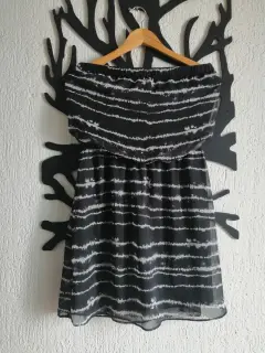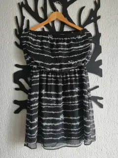 Vestido Negro y Blanco. Marca EXPRESS. Talla M. Es Strapless. La tela es una gasa vaporosa y liviana y el vestido esta completamente forrado. Una pieza Ideal para climas cálidos.