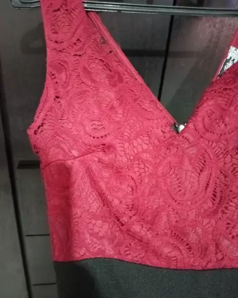 Vestido negro con encaje rojo cierre en la espalda super lindo!!! El detalle del encaje lo hace ver más chic y en cada compra lleva un regalito