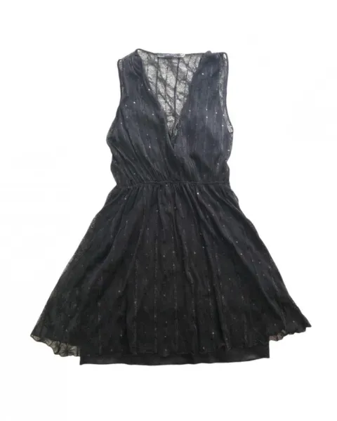 Hermoso vestido corto en negro con detalles en lentejuelas, tela transparente y fondo en negro satinado, no dejes que te lo ganen!!🍾