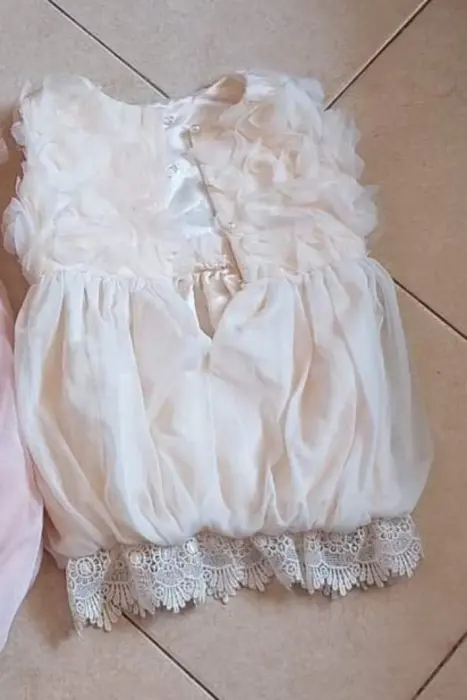 Vestido niña. Vestido bombacho en color beige, talla 1, botones tipo perla, hecho por modista, puesto solo una vez. Excelente estado