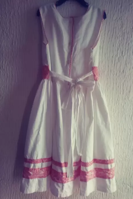Vestido Niña Crema y Rosa. Vestido sin manga talla 10 añosComposición: 90% algodón, 10% Poliestér. Forro: 100% Poliestér. Tipo manta. Ideal para esta temporada primavera-verano. Vestido fresco y cómodo, abajo de la rodilla y forro