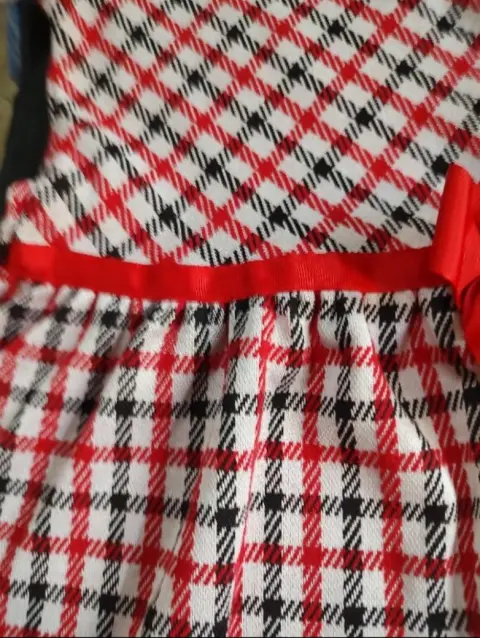 Vestido niña talla 5. Vestido de niña, marca Fiorella, talla 5, con falda a la cadera, moño rojo pequeño al frente
