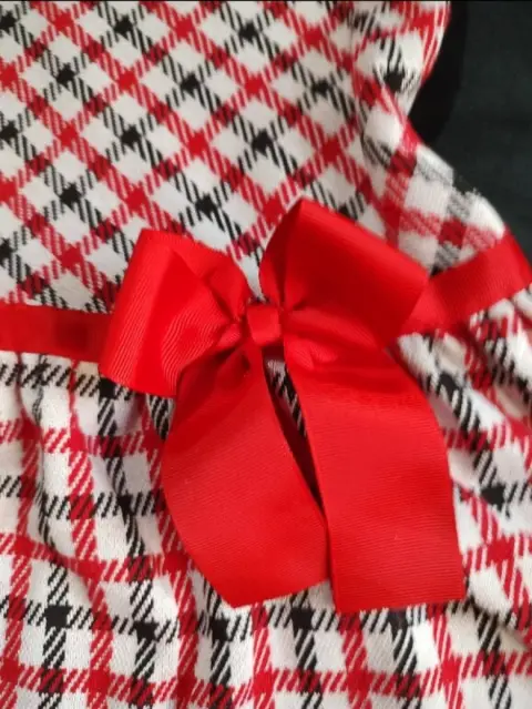 Vestido de niña, marca Fiorella, talla 5, con falda a la cadera, moño rojo pequeño al frente