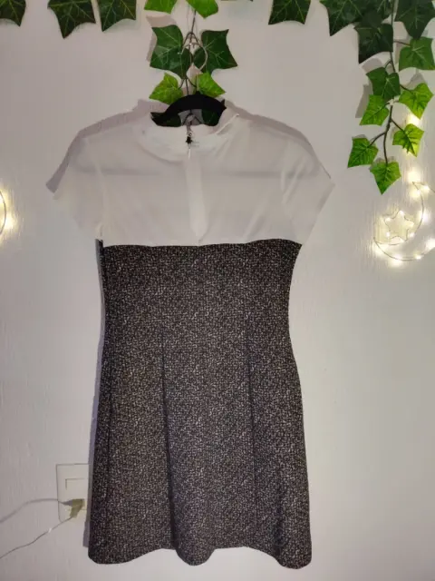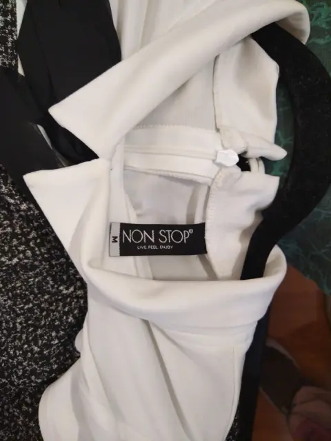 Vestido Nonstop gris con blanco, talla mediana, en excelente condición. Medidas: ancho 33 cm, largo 82 cm.