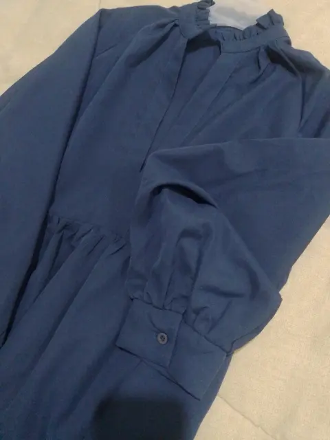 Vestido nuevo azul marino. Es un vestido manga larga con botón en el puño, el largo es de 98 cms, circunferencia de cintura 102 cms.