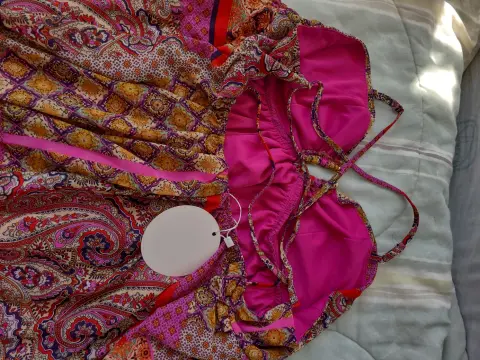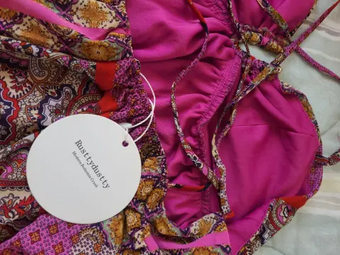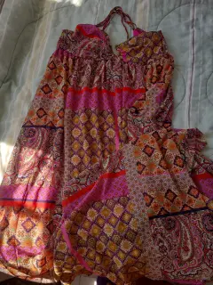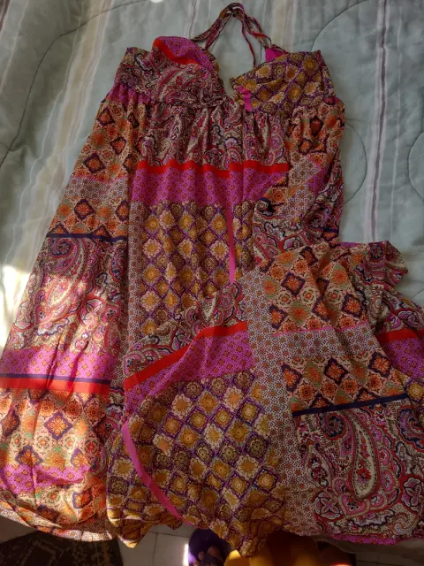 Vestido nuevo de playa largo bohemio. Vestido Russtydustty, talla XL. Largo de 94 cm la falda midiendo a partir debajo del pecho. Espalda descubierta con lazos ajustables, pecho mide 92 cm pero ajusta porque la espalda es descubierta.