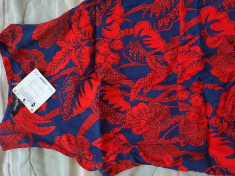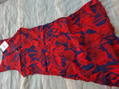 Vestido súper fresco y ligero sin manga. La tela no estira, medidas hombro 30 cm, pecho 80 cm, cintura 72 cm, cadera 86 cm. Largo arriba de la rodilla, la talla equivale a 30 en México.