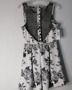 Vestido nuevo blanco con negro. Estampado de flores con cierre lateral y forro en la parte de la falda, encaje en la parte de la espalda.