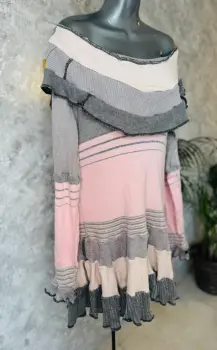 Vestido o blusón estilo gótico Coquette EG. Vestido desombrado estilo gótico Coquette.Da la impresión como si fueran retazos de tela al revés.Tejido de punto y partes brillosas, rosa con gris.La parte de los hombros es muy escotadaTalla XL