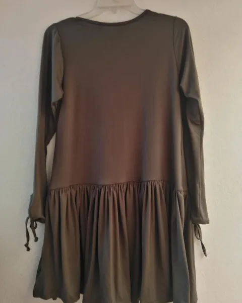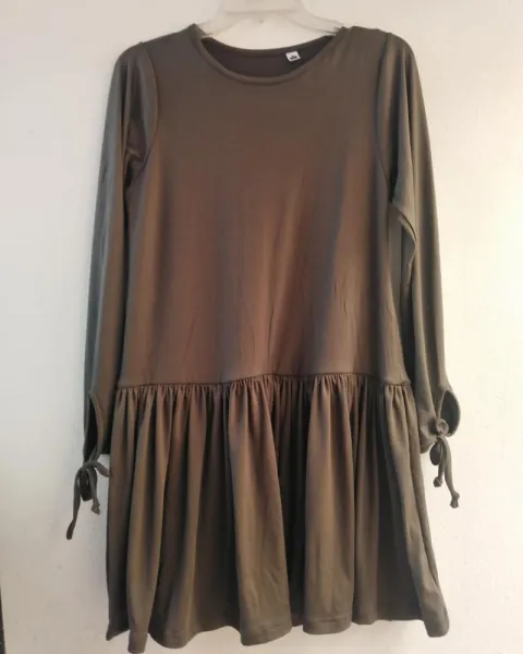 Vestido o bluson verde militar u olivo, como lo quieras usar, unitalla, manga larga, tela brush, nuevo sin detalle sin etiqueta