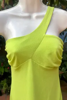 Vestido One shoulder. Vestido one shoulder de tirante, verde limon casi neón, corte asimétrico. Talla 6 es decir Mediana (reducida) aproximadamente.
