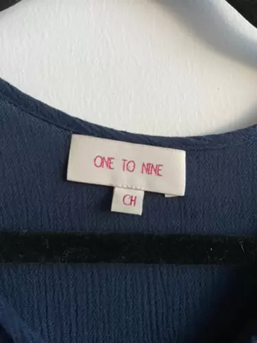 Vestido One to Nine. Cómodo y hermoso vestido de maternidad talla Ch, marca One to nine, tela 100% rayón, tiene 2 detalles que se muestran en las fotos, se puede arreglar, mide 38cm de hombro a hombro, 48 de axila a axila y 89cm de largo.