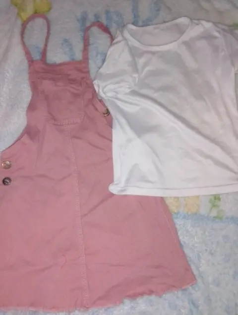 Vestido overol. Vestido/overol, para niña, talla 6 viene con su blusita. Puesto como 3 veces
