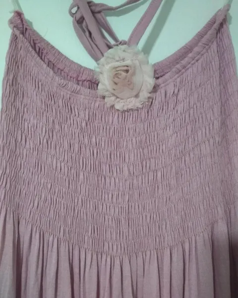 Vestido color Palo de Rosa, strapless con un tirante tipo halter y elástico en la parte baja para hacerlo con caída tipo globo, trae el aplique de una rosa en el pecho, es unitalla por la tela plisada y elástica si puede quedar a talla S, M o L, a una talla 30, 32 le queda bien, ancho Axila=27-60cm, ancho Cintura=70-85cm, ancho Cadera=79-90cm, Largo=70cm, es nuevo pero no trae etiqueta, Te regalo $100 con mi código de descuento si es tu primera compra iuNisj3oSQ