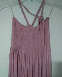 Vestido Palo de Rosa. Vestido color Palo de Rosa, strapless con un tirante tipo halter y elástico en la parte baja para hacerlo con caída tipo globo, trae el aplique de una rosa en el pecho, es unitalla por la tela plisada y elástica si puede quedar a talla S, M o L, a una talla 30, 32 le queda bien, ancho Axila=27-60cm, ancho Cintura=70-85cm, ancho Cadera=79-90cm, Largo=70cm, es nuevo pero no trae etiqueta, Te regalo $100 con mi código de descuento si es tu primera compra iuNisj3oSQ