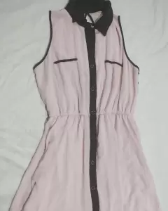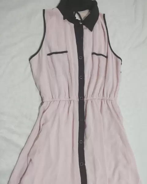Vestido palo de rosa con negro. Vestido corto con cuello en negro detalle en l espalda botonadura en el frente sin manga