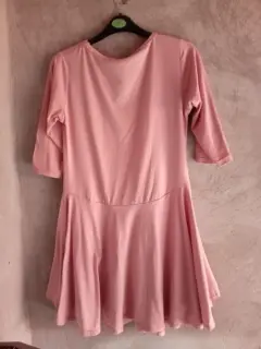 Lindo vestido palo de rosa de vuelo ,liso ,se acopla perfectamente atu cuerpo marcando tu cintura ,mangas tres cuartos y muy fresco ,talla M .Cuanta con una pequeñísima costura del lado derecho a la altura del codo muy discreta.