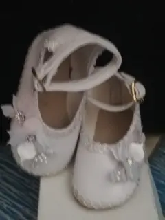 Vestido de bautizo talla 2, con adornos finos en encaje, incluye gorrito de la misma tela y zapatitos talla 12 con adorno elegante en flor.