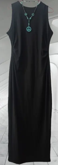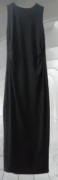 Vestido de cuello redondo, en color negro, con detalle en la cintura para estilizar la figura, 1.35 CM de largo, de poliéster y elastano, adecuado para todo tipo de evento, no incluye accesorios.
