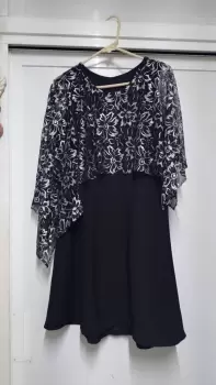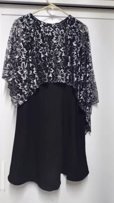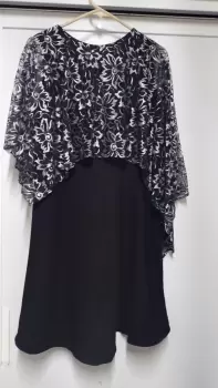 Vestido para Dama + de 60 años para fiestas. Vestido para fiesta, talla 36 confección en alta costura , color negro con chalina con encaje negro con plata. Vestido perfecto para una fiesta y ocasión especial.