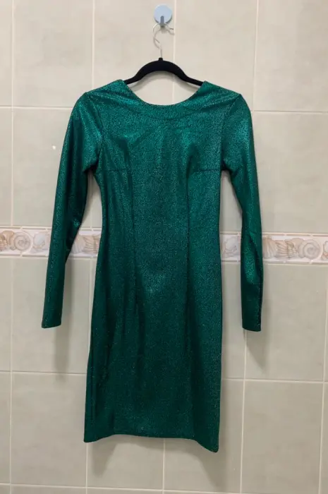 Vestido para fiesta. Vestido manga larga, escote en V y cierre frontal. Tela de poliéster gruesa.Medidas: espalda: 32 cm, busto: 35 cm, cintura: 32 cm, cadera: 40 cm, largo: 90 cm