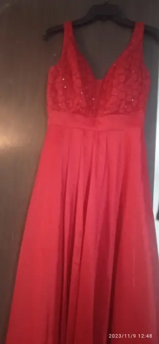 Vestido para fiesta. Bordado con lentejuela y falda tipo razo