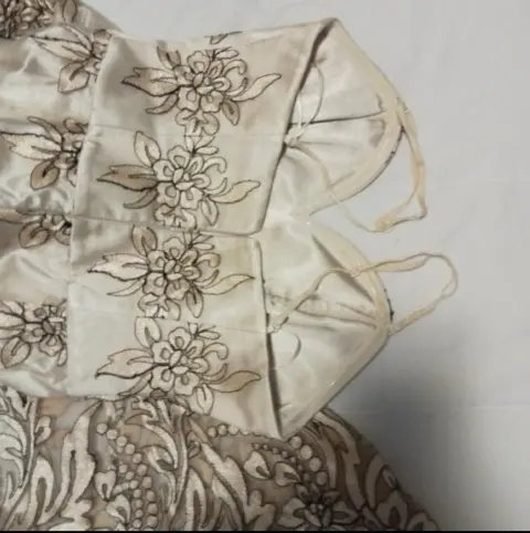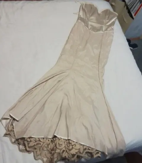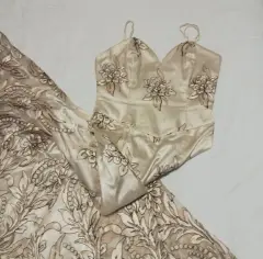 Hermosos vestido, color champán con transparencias en bordado negro y dorado, straples tipo sirena, solo usado 1 vez. Está como nuevo, marca Ivonne