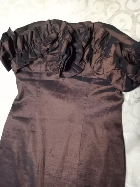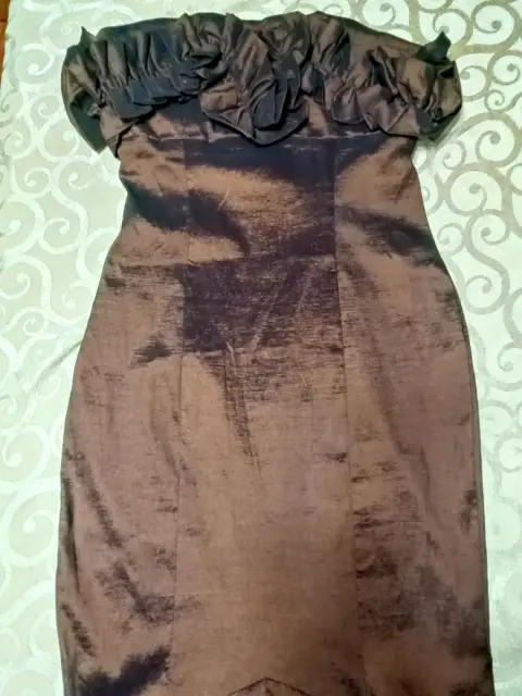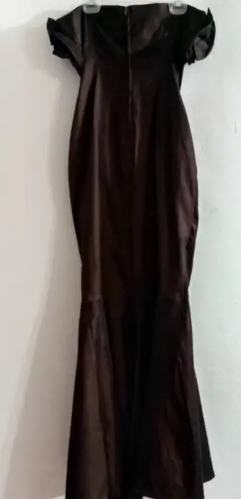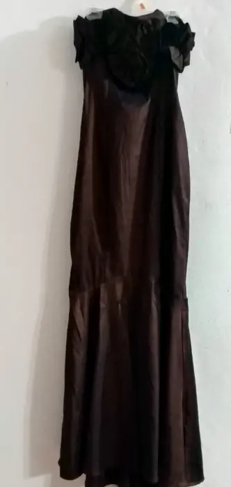 Hermoso vestido para fiesta con bonitos detalles, largo color café cobre en excelente condiciones.
