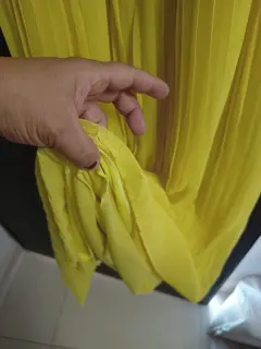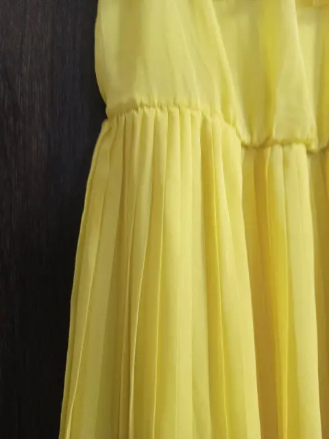 Vestido para fiesta. Vestido casual amarillo, falda tablitas con forro y lindo olan en el pecho, tirante ajustable,