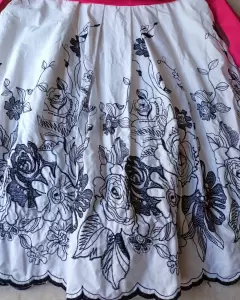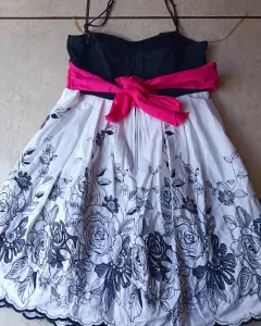 Vestido para Fiesta de día, de tirantes delgados, con un bordado de flores negras muy bonito, largo arriba de las rodillas. Talla M